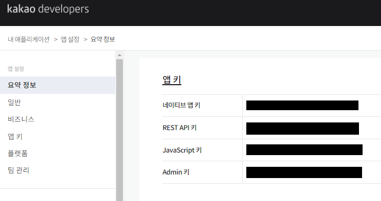 - 아래 링크에서 내 애플리케이션을 하나 생성하면 앱 키를 생성 받을 수 있음