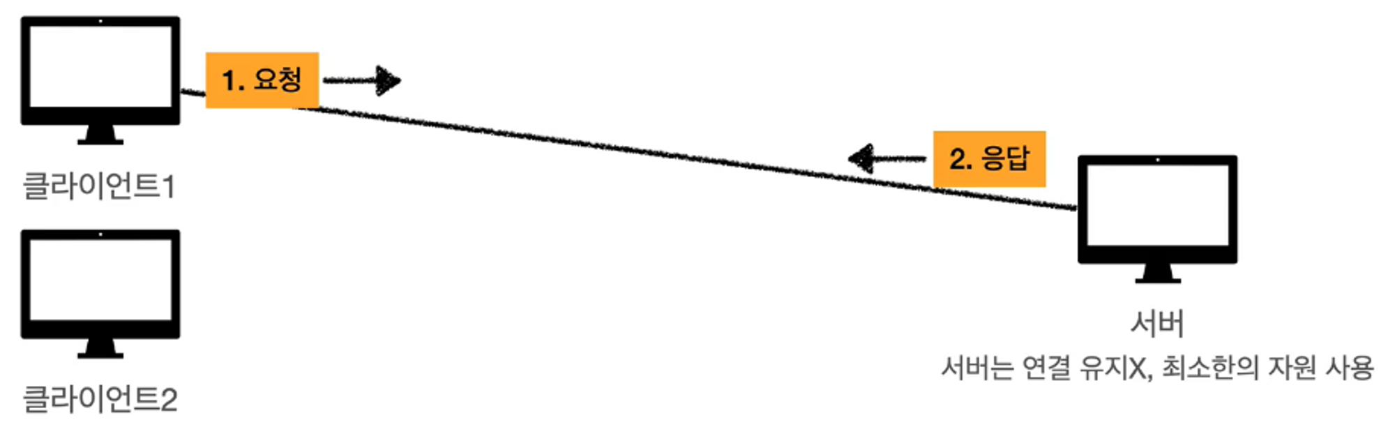 TCP/IP 기본적으로 연결을 유지를 한다. 하지만 안쓰는 요청들을 유지 하고 있는건 너무 비 효율적이다. 연결을 유지하지 않는 모델(HTTP) → 서버는 연결 유지 X, 최소한의 자원 사용 ( 요청이 들어올때만 연결을 시켜준다. ) 비 연결성 HTTP는 기본이 연결을 유지하지 않는 모델 일반적으로 초 단위의 이하의 빠른 속도로 응답 1시간 동안 수천명이 서비스를 사용해도 실제 서버에서 동시에 처리하는 요청은 수십개 이하로 매우 작음(예 ) 웹 브라우저에서 계속 연속해서 검색을 누르지 않음) 서버 자원을 매우 효율적으로 사용 할 수 있다. 비 연결성의 한계와 극복 TCP/IP 연결을 새로 맺어야 함 - 3 way handshake 시간 추가 웹 브라우저로 사이트를 요청하면 HTML 뿐만 아니라 자바스크립..